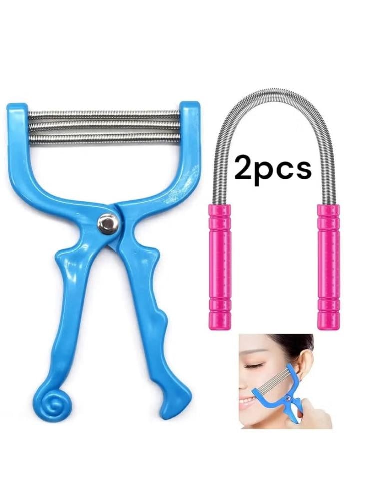 مجموعة من أداة إزالة شعر الوجه اليدوية للنساء، مزيل شعر زنبركي للوجه والذقن-2قطعتين